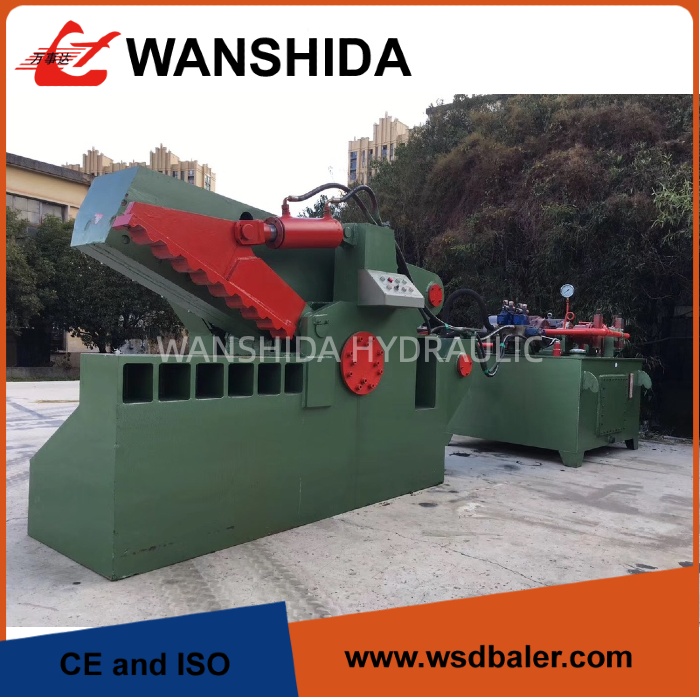 A tesoura hidráulica jacaré Wanshida Q43-1600 é uma solução de corte de sucata de alto desempenho construída para operações de reciclagem pesadas. Com uma força de cisalhamento de 160 toneladas e uma lâmina robusta de 800 mm, ela pode cortar com eficiência aço, cobre, alumínio e outras sucatas de metal com precisão e velocidade.